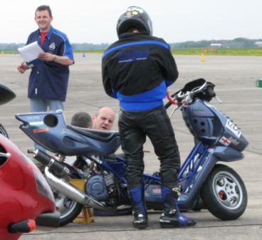 This time its a pic taken by Denise (the wife) of Shaun, one of the Straightliners crew calling riders to the line for eliminations, theres Daz and Paul the Lambretta Riders and myself.